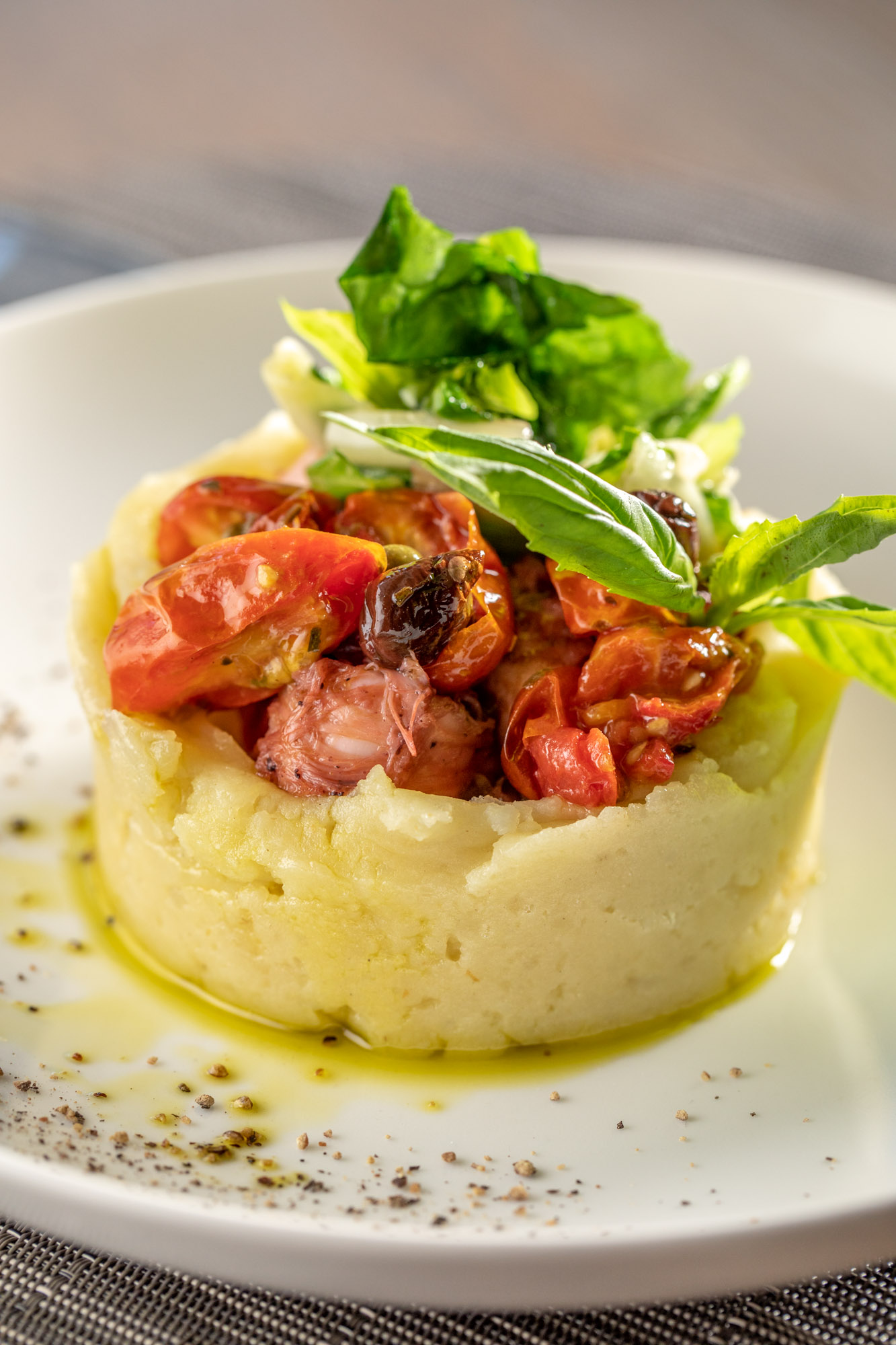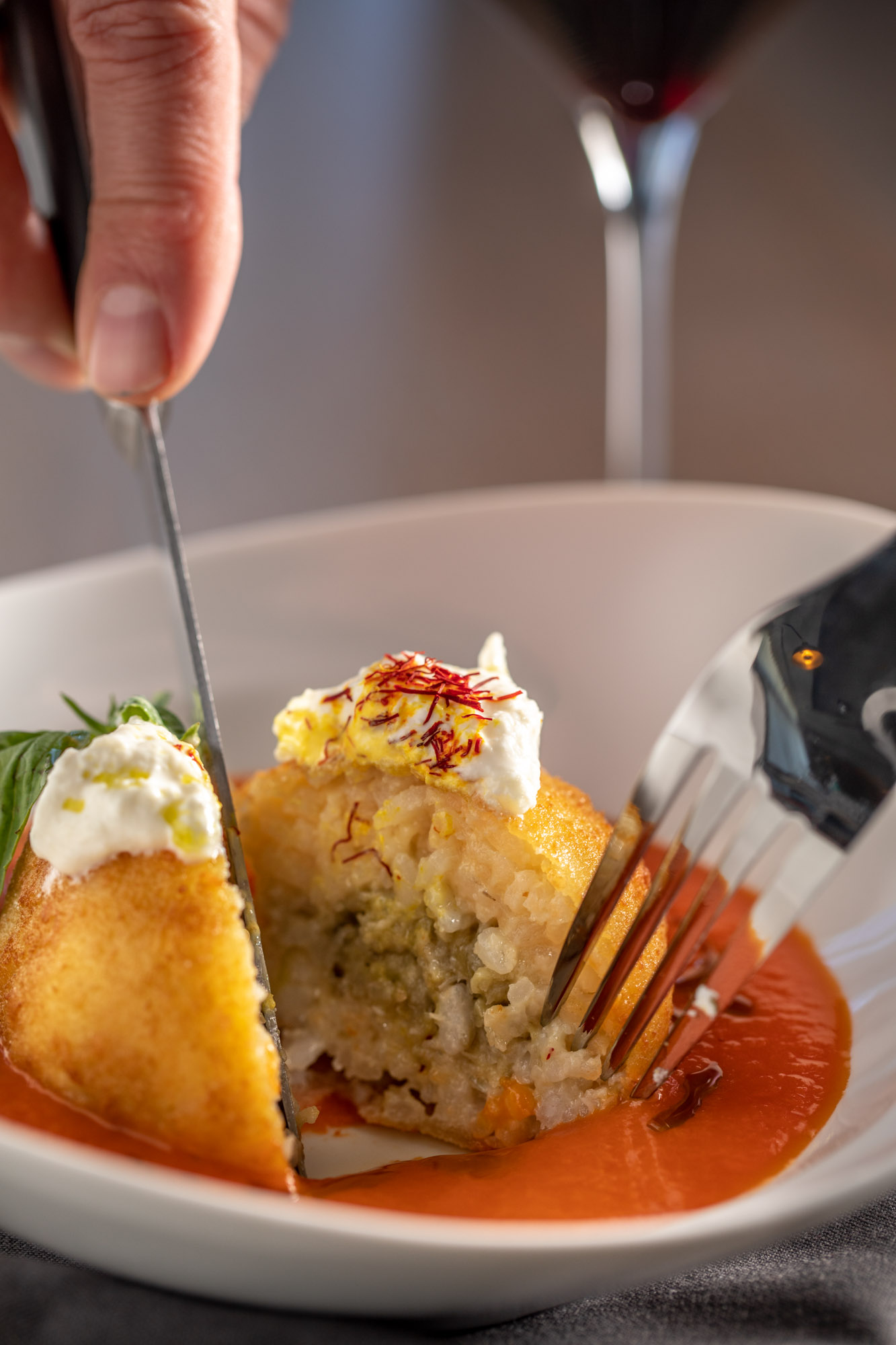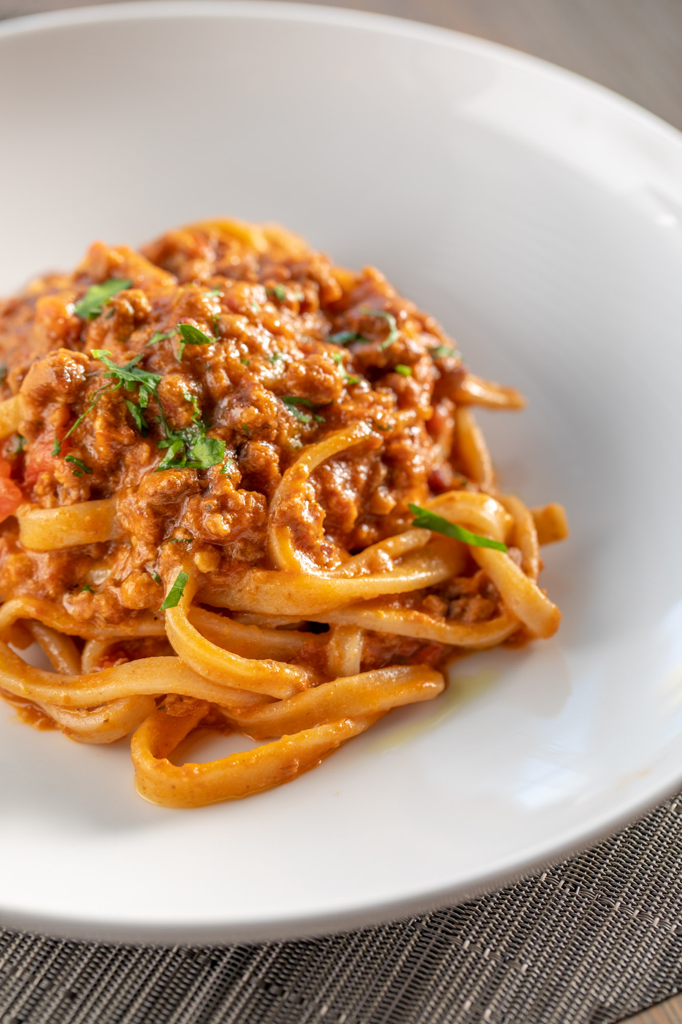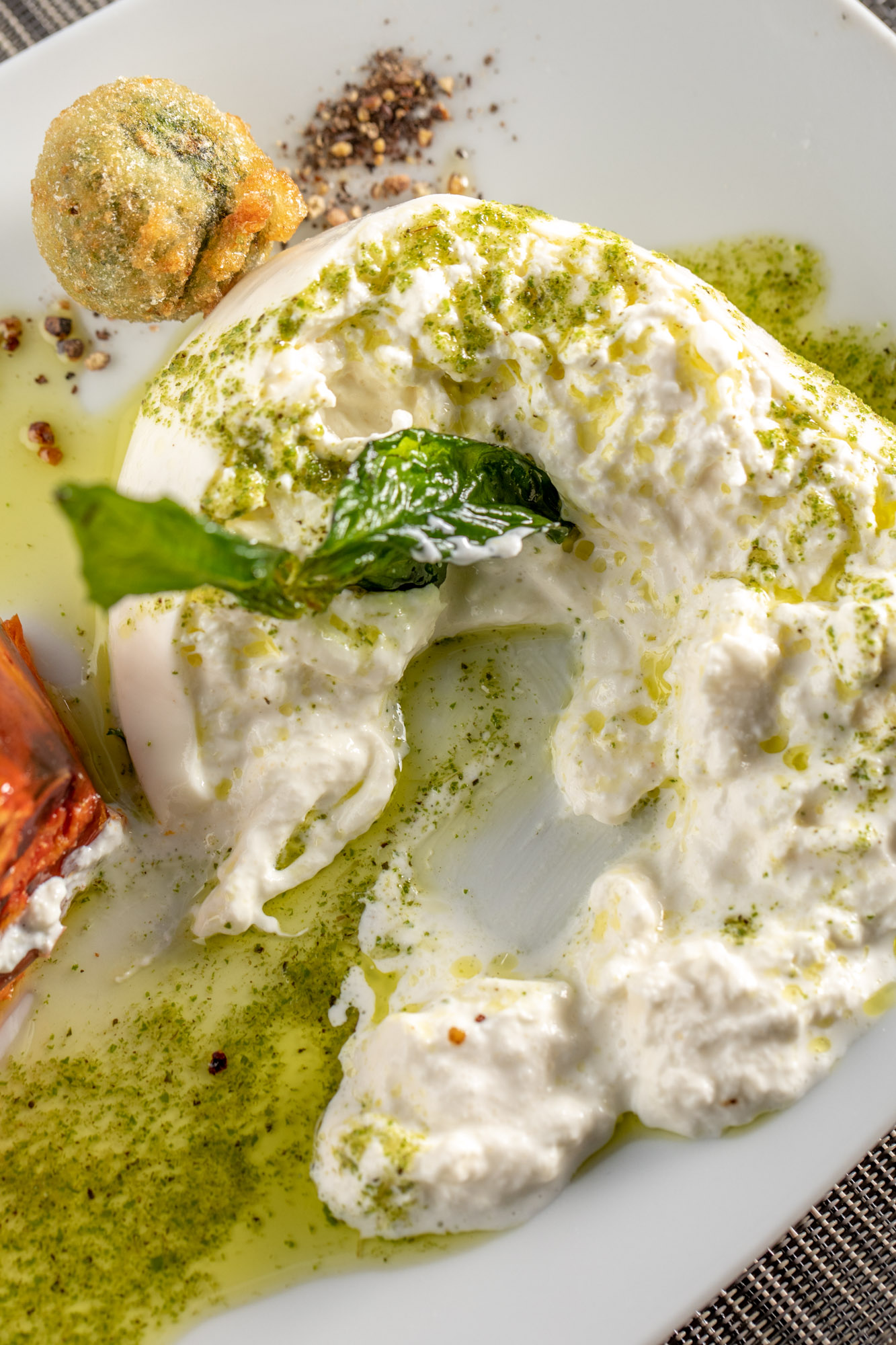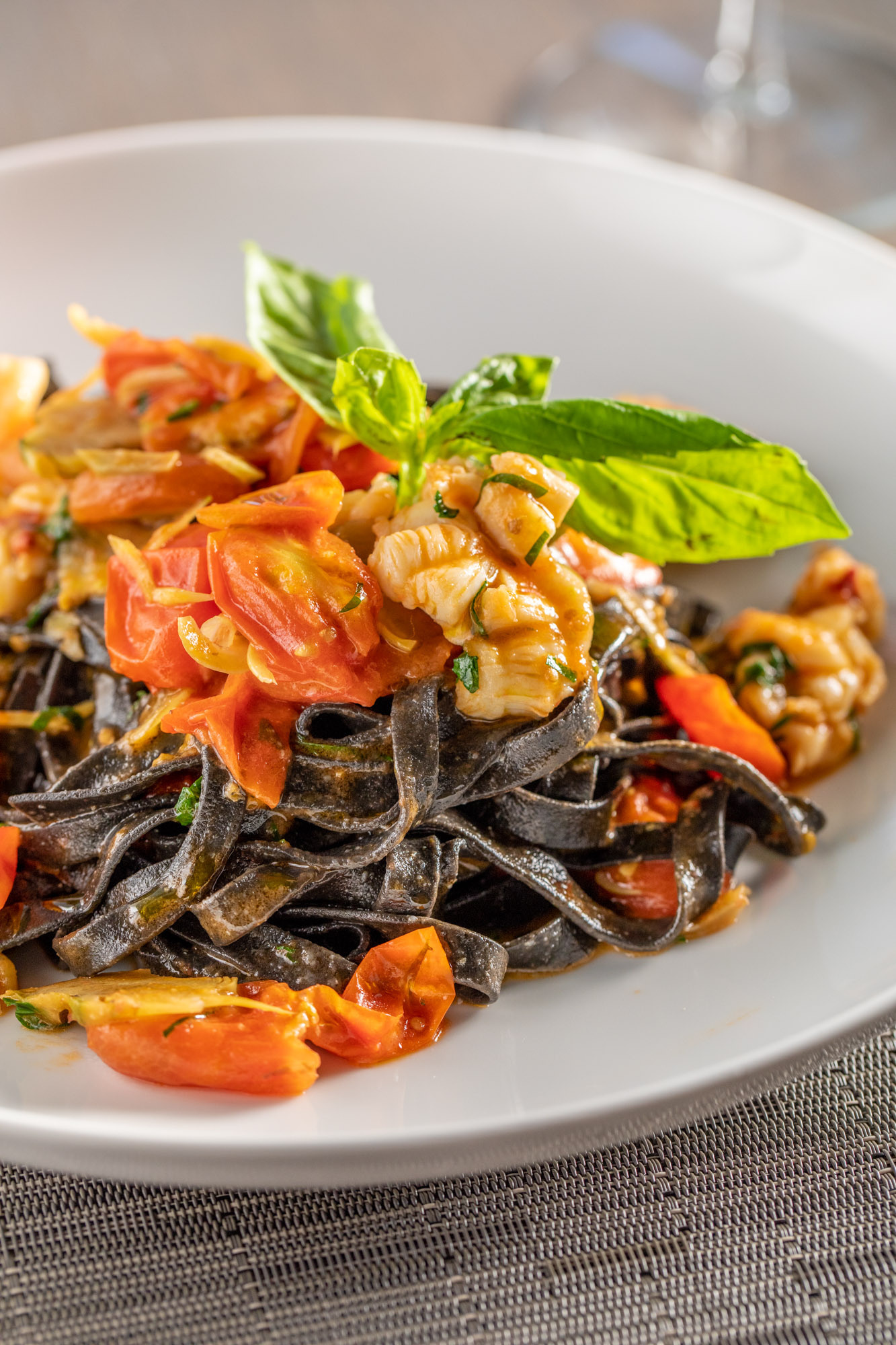 I would describe Gioia as modern Italian cuisine. They have all of the classic dishes that you would expect to find in an Italian restaurant but prepared in a new fresh way. Familiar but definitely not what your Nonna would serve. Maybe she would only make a face and then smile after her first bite. The cacio e pepe is served very much in the classic style but with less cheese and a little sprig of basil. A little variation from what you might typically find but nothing too crazy. When the fluke crude comes she’s probably going to raise an eyebrow. It’s an artfully arranged dish. Thin layers of fish, parmesan cheese, and an artful splatter of sauce. Whether she likes it or not I couldn’t possibly say in advance but I can definitely recommend the Calamarata Pomodoro. The pasta comes in big voluptuous shapes that are drowning in a slightly sweet tomato sauce. The shape of the pasta is designed to allow you to scoop up as much gooey sauce as possible. And when there’s still delicious red streaks on your plate the dish comes with fresh baked bread to soak it up with. It’s also prepared table side and the show is definitely a part of the meal.
