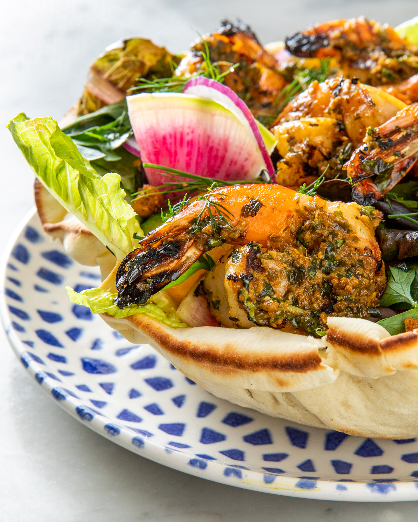 Imagine yourself taking a stroll through SoHo in New York City. It’s a fall day and it’s a little chilly. The bite of the cold air pokes in your jacket sleeves and your spouses scarf. It’s warm in the sun but as you stroll through the quaint streets little pockets of shade make you want to find a little spot to eat. Sit down and escape from the nips of chilly breezes. You pass a pizza place… an all day cafe… but than there it is. Shuka. Blue French doors give way to an ornately decorated interior. Shuka is a mediterranean restaurant with geometric tiles and cute little sconces that give you feel of being someplace else. Step across the threshold and be transported far away to another place and time.