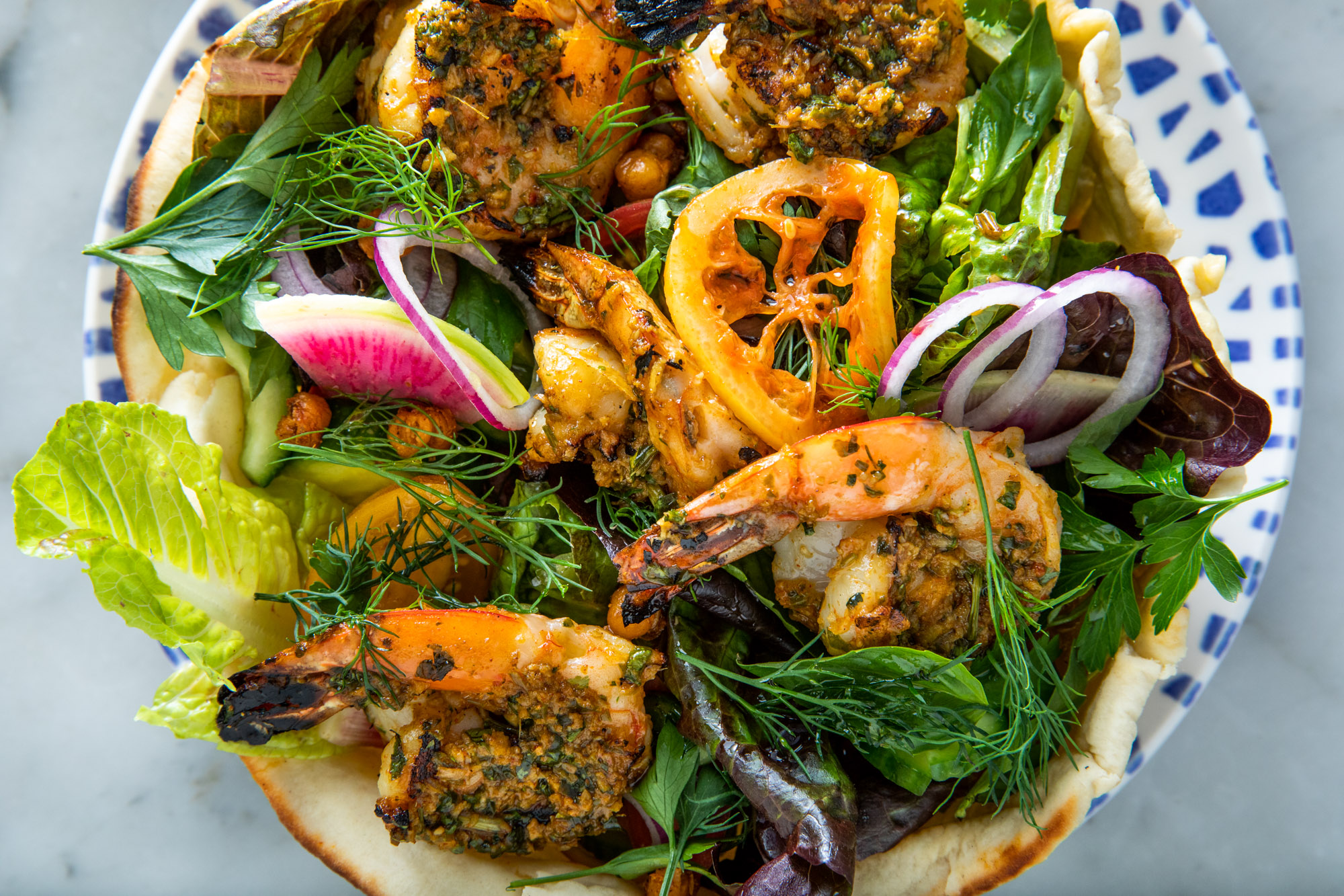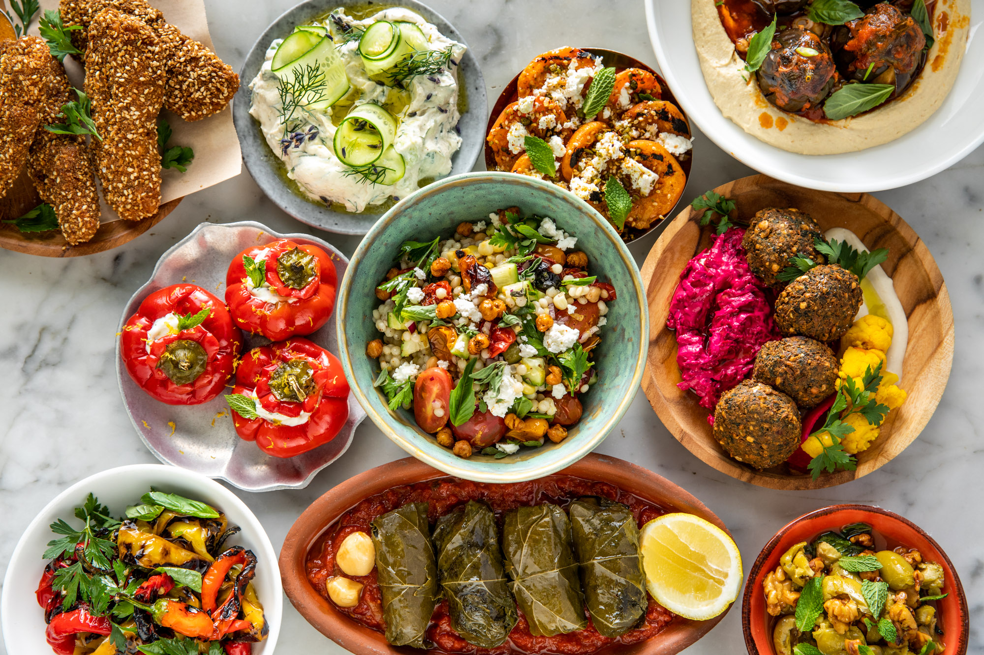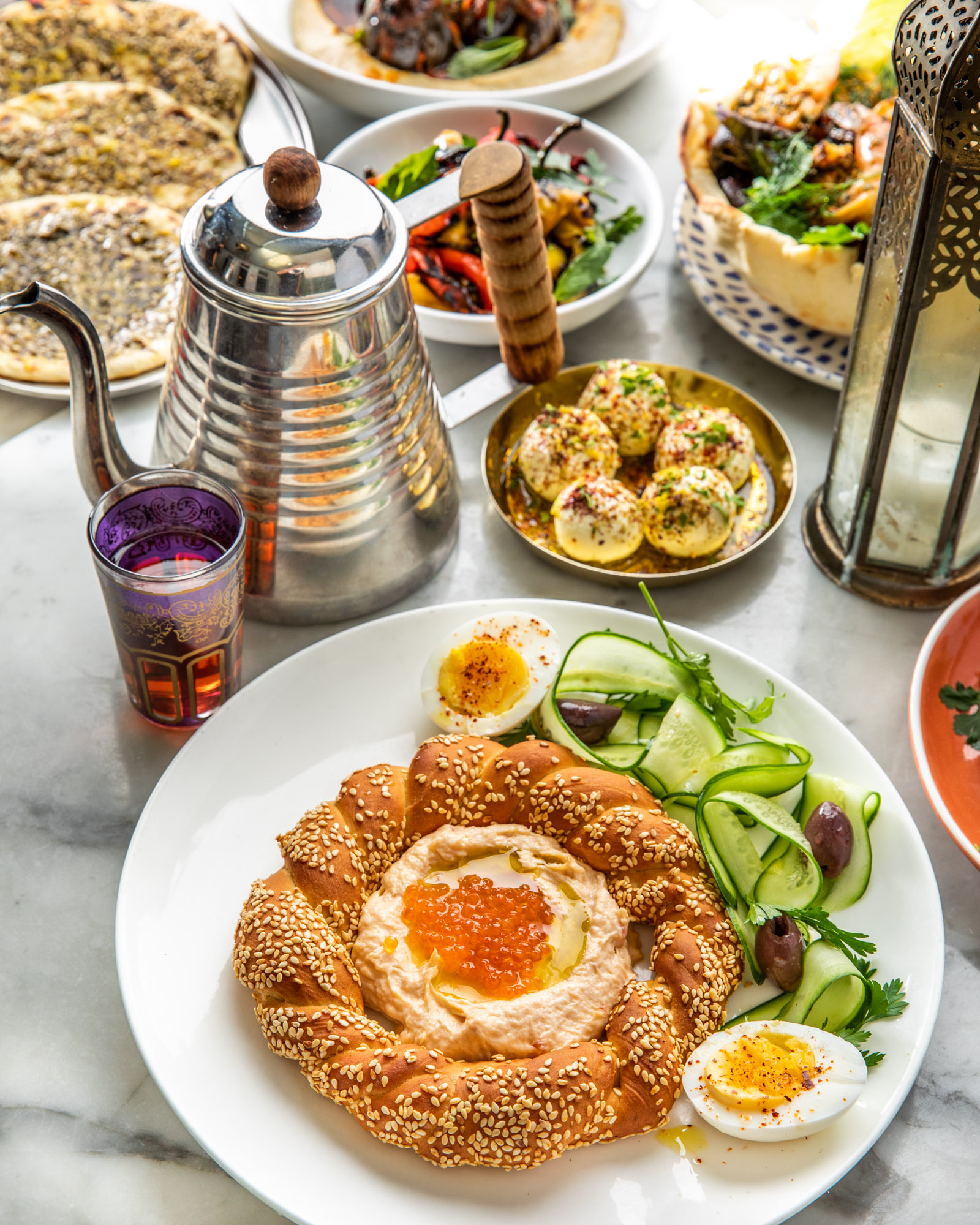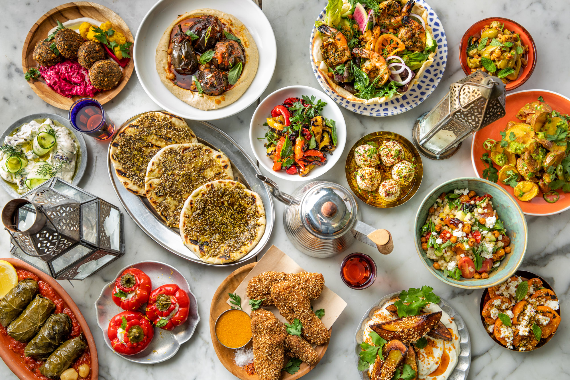 You take your seat at a blue mosaic tiled table. The menu lists labnes and babaganoushes and taramasalatas. We’re going to have to get at least one dip with the falafel. Or the fried halloumi? We gotta get the fried halloumi. And we can’t possibly leave here without the lamb kebab. On a menu with so many great choices the hardest part is just the need to make any choices at all. Please waitress just bring me one of everything. A giant sampler made of just a bite of every single item on the menu. What that’s off menu and we can’t order it? Technically it’s everything on the menu… The only possible and best solution to this conundrum is to come back often and be a regular. If you’re lucky and you do become a regular you’ll get a chance to meet chef Ayesha and have her welcome you into her home away from home. She’s the culinary genius behind all the delicious food that you’re about to eat.